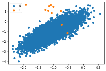 n_clusters_per_class=1, weights=[0.999], flip_y=0, random_state=4)