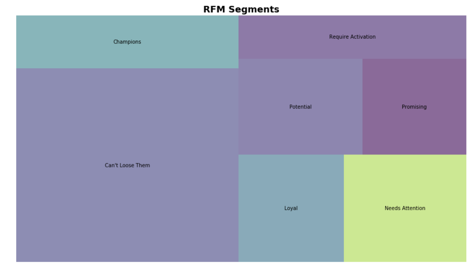 - Potential - มีศักยภาพสูงในการเข้าสู่กลุ่มลูกค้า Loyal อาจลองแจกของสมนาคุณในการซื้อครั้งต่อไป เพื่อแสดงว่าเราให้คุณค่ากับพวกเขา