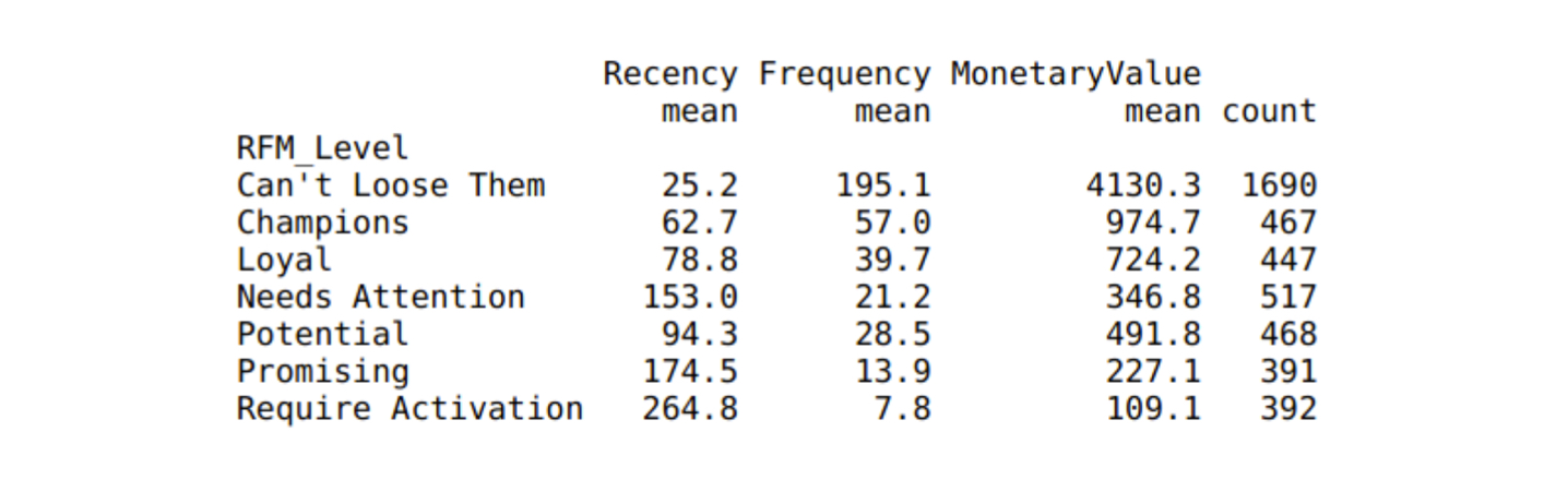 print(rfm_level_agg)