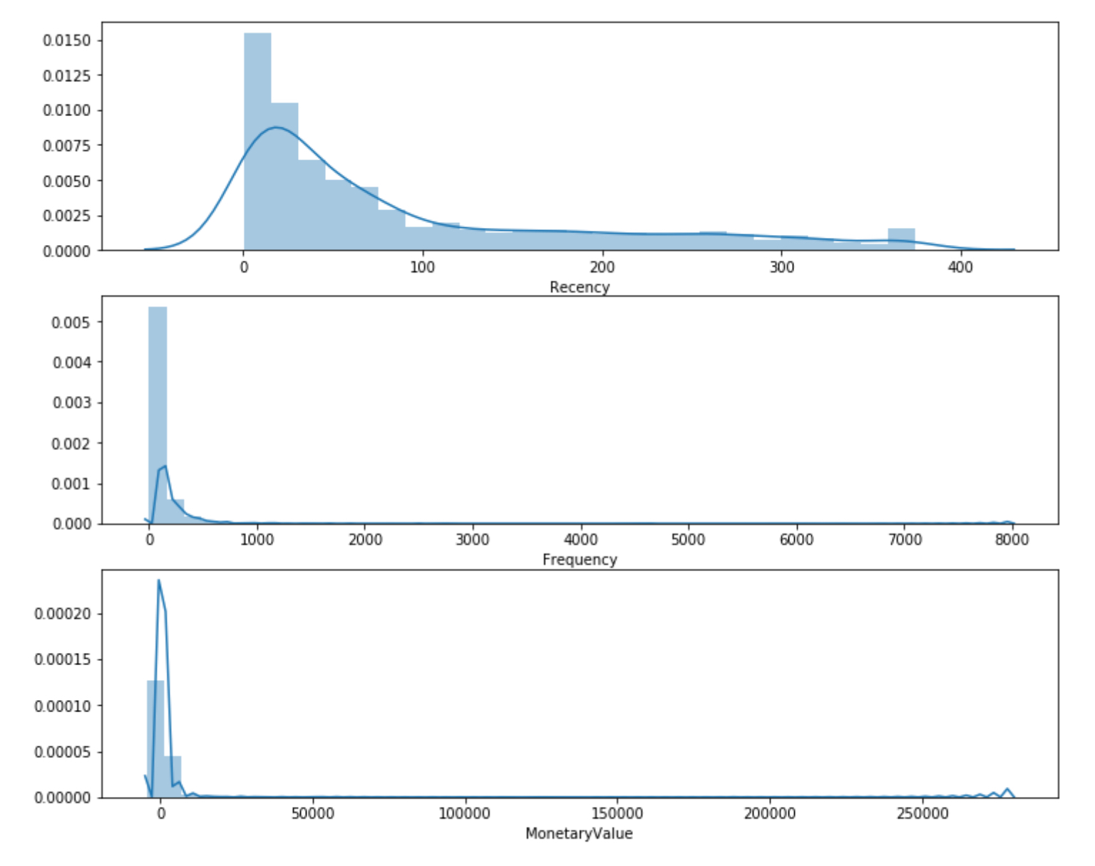 CustomerID Recency Frequency MonetaryValue